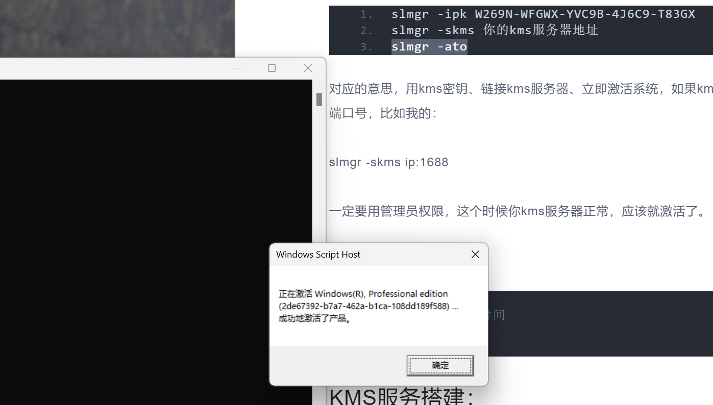 对应的意思,用kms密钥、链接kms服务器、立即激活系统,如果kms服务器地址是ip,可能需要带端口号,比如我的:
