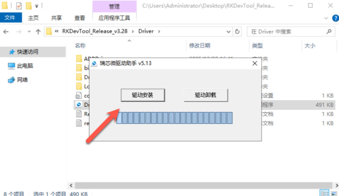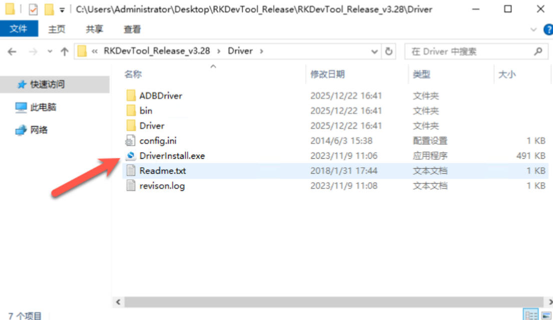 进入 RKDevTool_Release_v3.28\Driver 目录,点击 DriverInstall.exe 安装驱动