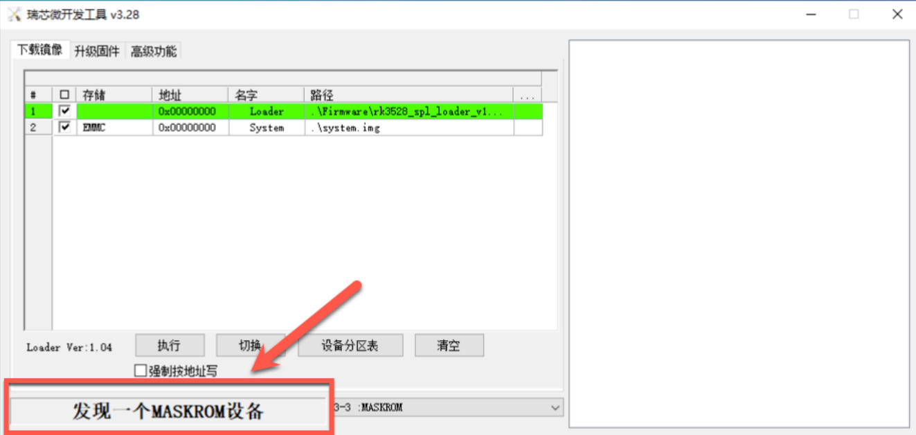 显示“发现一个 MASKROM 设备”就可以刷机了,如果不行多试几次
