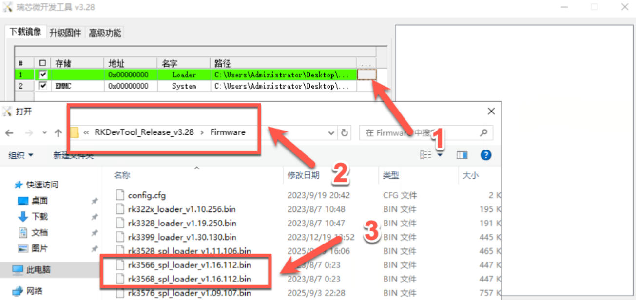 修改 Loader 路径,根据设备处理器选择对应的 bin 文件(在 Firmware 目录下,这里我选的是 rk3568)