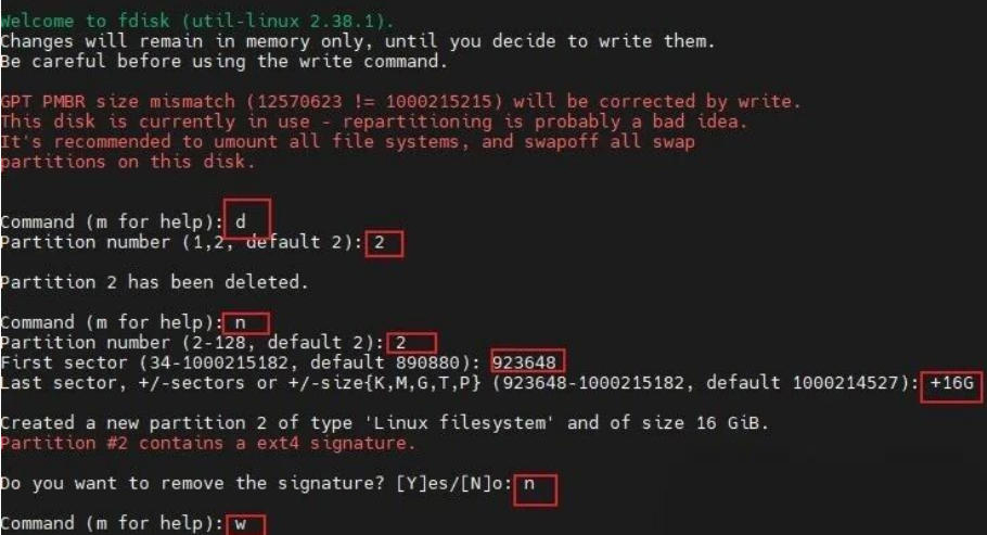 2.进入 fdisk 修改分区表